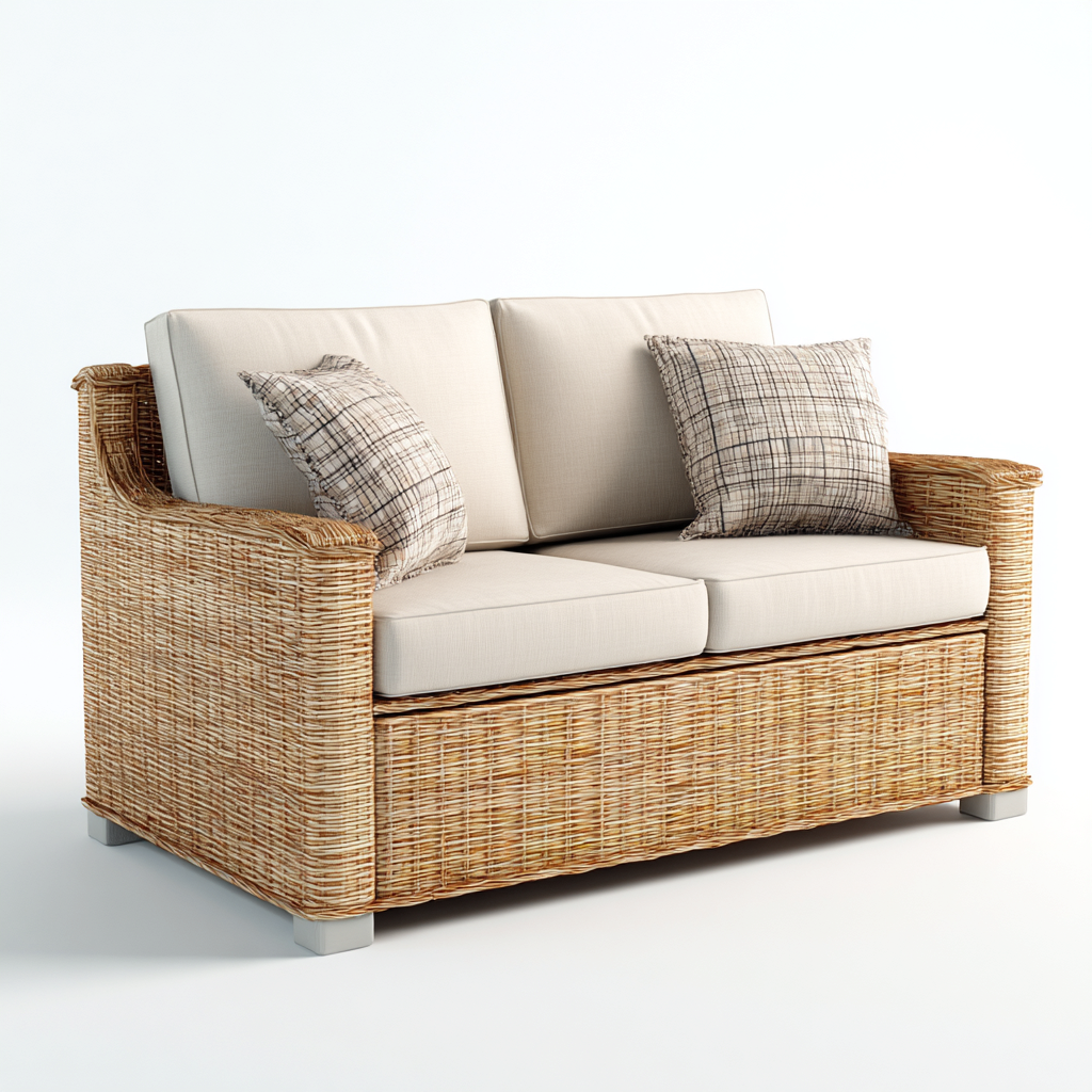 Sofa ogrodowa z technorattanu 160x85x85 cm - naturalny rattan z jasnobeżowymi poduszkami - styl nowoczesny - odpowiednia do ogrodu i tarasu