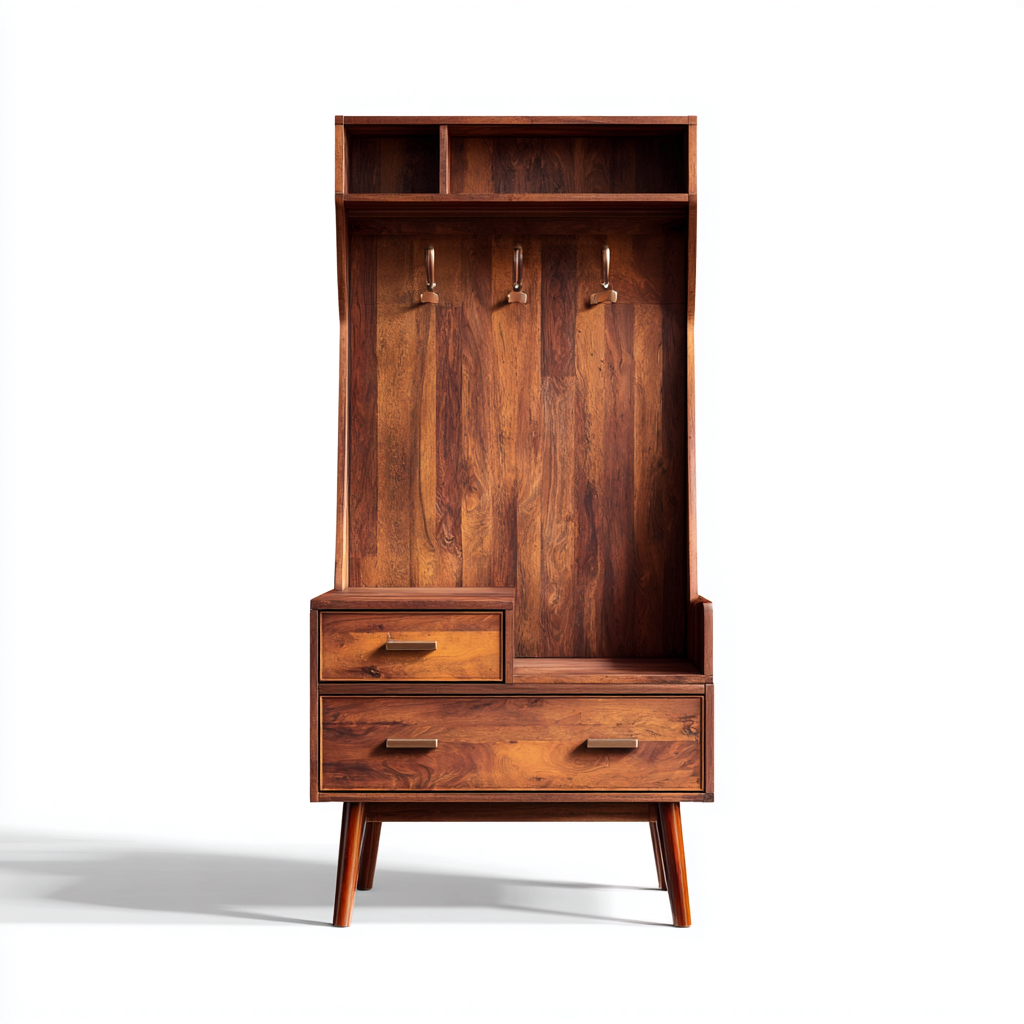 Wieszak na ubrania z drążkiem, półką i drzwiami 100x50x180 cm - drewno naturalne - styl minimalistyczny, odpowiedni do przedpokoju
