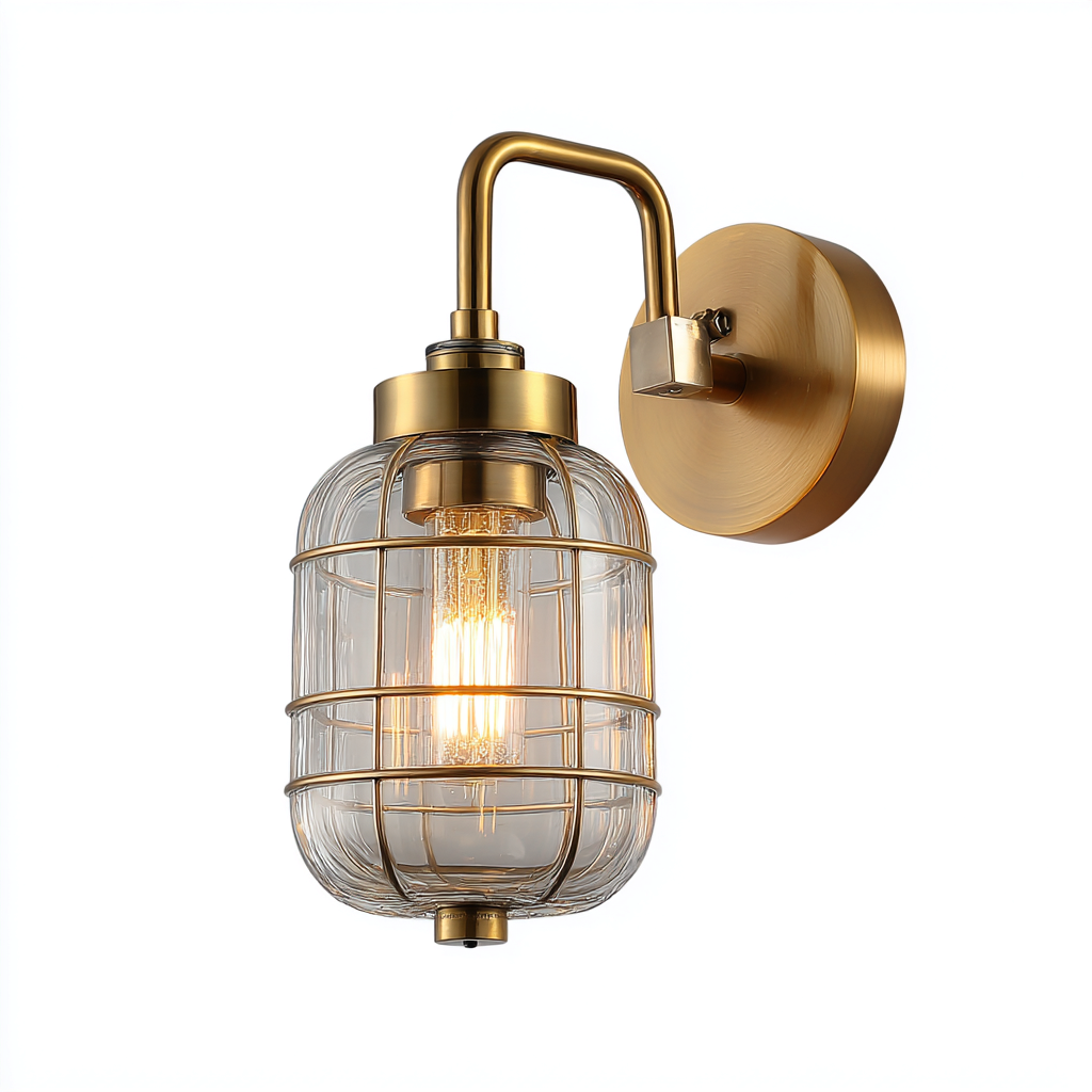 Industrialny kinkiet metalowo-szklany to wyjątkowe połączenie elegancji i nowoczesności. Jego złote wykończenie i szklany klosz w metalowej osłonie nadają wnętrzu charakter loftowy z nutą luksusu, doskonale komponując się z aranżacjami w stylu industrialnym i nowoczesnym.