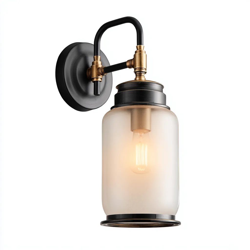 Industrialny kinkiet metalowo-szklany to wyjątkowe połączenie surowego charakteru i elegancji. Jego czarno-złote wykończenie oraz szklany klosz o cylindrycznym kształcie nadają wnętrzu nowoczesny i stylowy akcent.