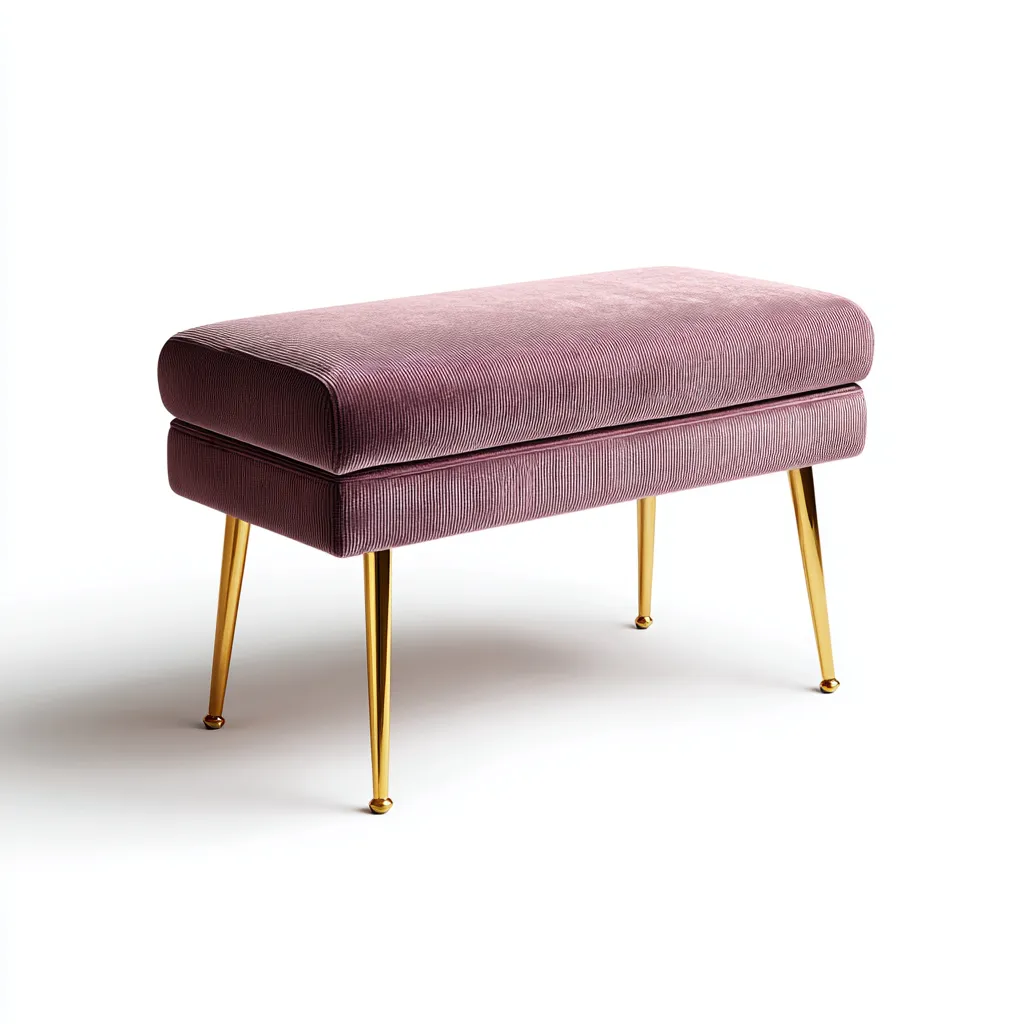 Nowoczesna ławka do przedpokoju w stylu glamour, tapicerowana miękkim aksamitem w odcieniu różowofioletowym, to elegancki mebel łączący luksusowy wygląd z funkcjonalnością. Smukłe, złote nogi nadają konstrukcji lekkości i szyku, czyniąc ją efektownym dodatkiem do każdego wnętrza. Idealna do przedpokoju, sypialni lub garderoby.