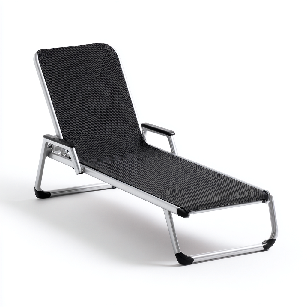 Leżak posiada regulowane oparcie, które pozwala na dopasowanie pozycji siedzenia lub leżenia według indywidualnych potrzeb. Ergonomiczne podłokietniki zwiększają komfort, a lekka konstrukcja umożliwia łatwe przenoszenie i przechowywanie.