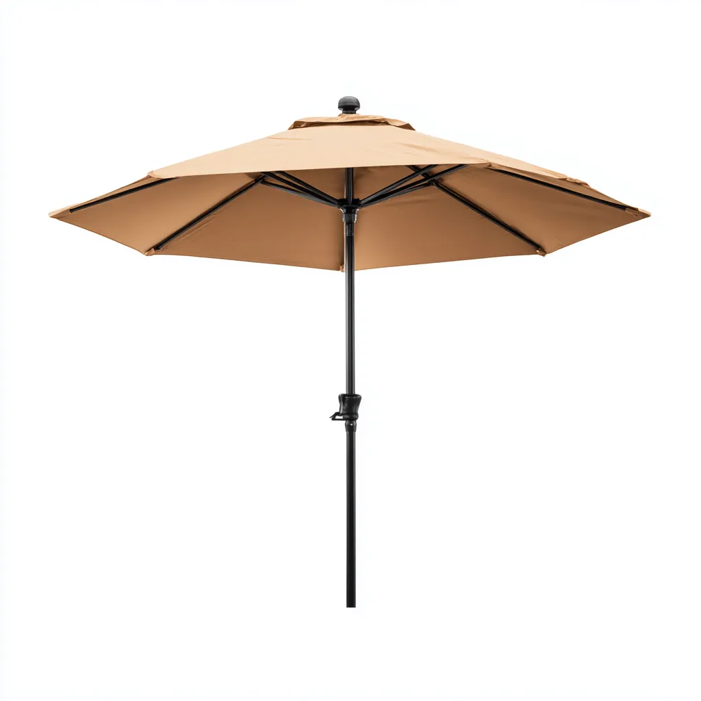 Parasol wykonany z trwałej tkaniny poliestrowej odpornej na promieniowanie UV i wilgoć. Stabilny trzon i stelaż z metalu malowanego proszkowo gwarantują odporność na korozję i długą żywotność. Brązowa tkanina nadaje całości elegancki, naturalny charakter.