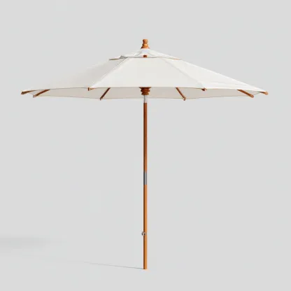 Parasol wykonany z wysokiej jakości tkaniny odpornej na promieniowanie UV i wilgoć. Stabilny trzon i żebra z naturalnego drewna zapewniają trwałość i estetyczny wygląd. Biała tkanina nadaje całości lekkości, wprowadzając świeżość i harmonię do otoczenia.