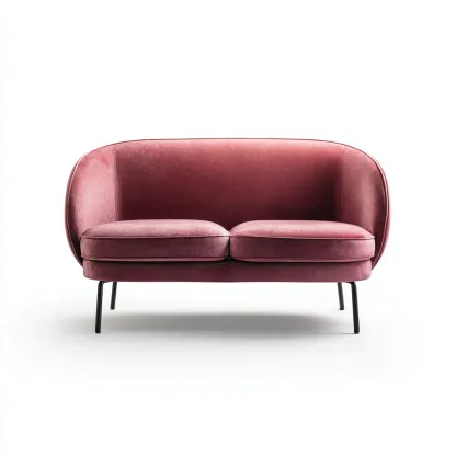 Sofa została tapicerowana miękką tkaniną welurową w kolorze różowym, która jest przyjemna w dotyku i nadaje wnętrzu elegancji. Smukłe czarne metalowe nogi podkreślają jej lekki i współczesny wygląd, zapewniając jednocześnie stabilność konstrukcji.
