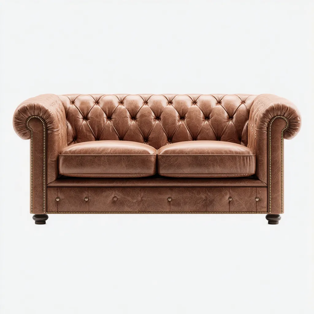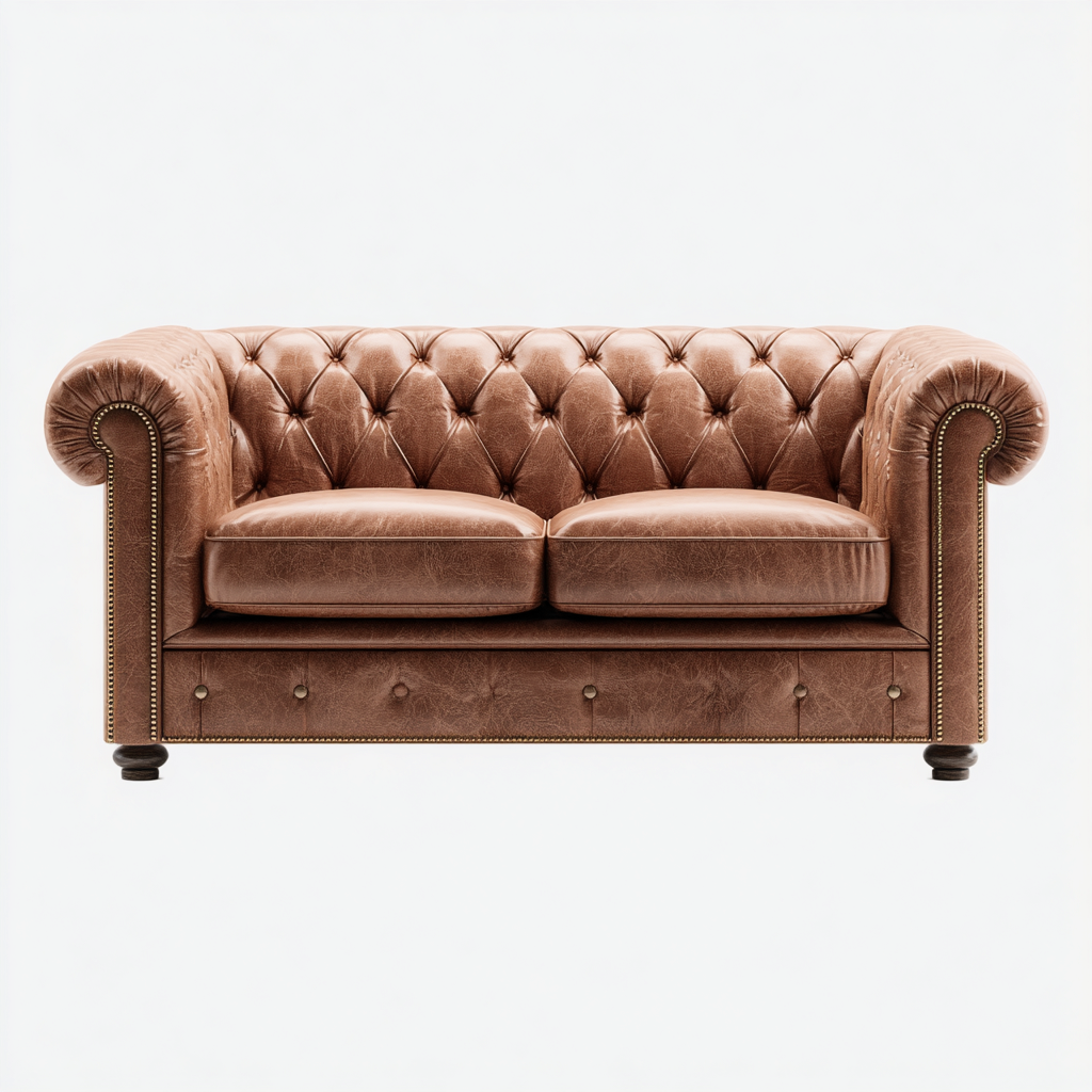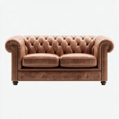 - 1 x Sofa dwuosobowa tapicerowana skórą naturalną w stylu chesterfield