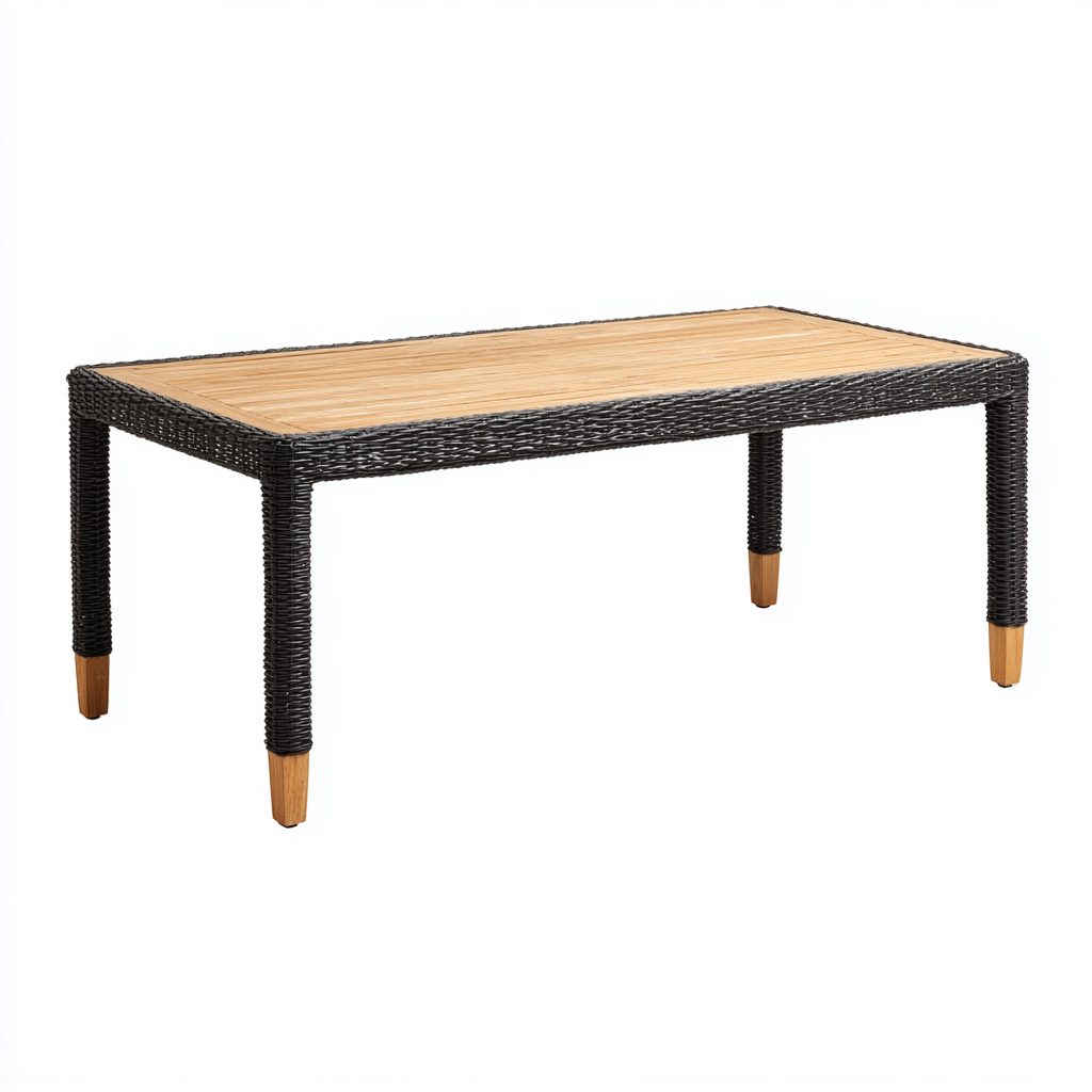 - 1 x Stół ogrodowy prostokątny z technorattanu i drewna tekowego