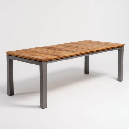 • 1 x Stół ogrodowy prostokątny z drewna tekowego i metalową ramą